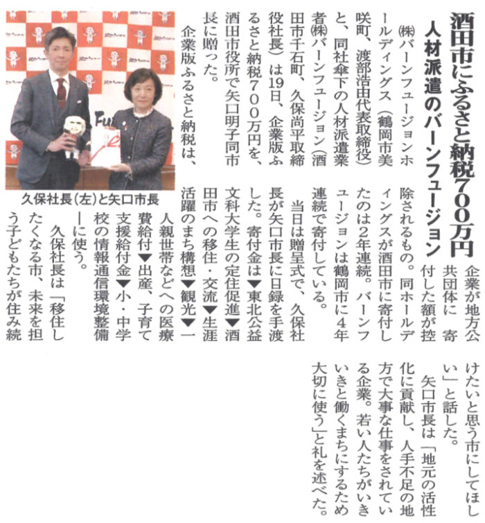 【コミュニティ新聞】企業版ふるさと納税について(23年度酒田市)