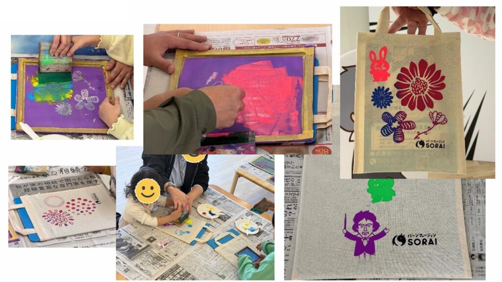 3/20,3/22の二日間にわたり、バーンフュージョンソライとのコラボ企画第1弾として地域の皆さまを対象とした「シルクスクリーンで作るオリジナルバッグ体験」 を開催しました。