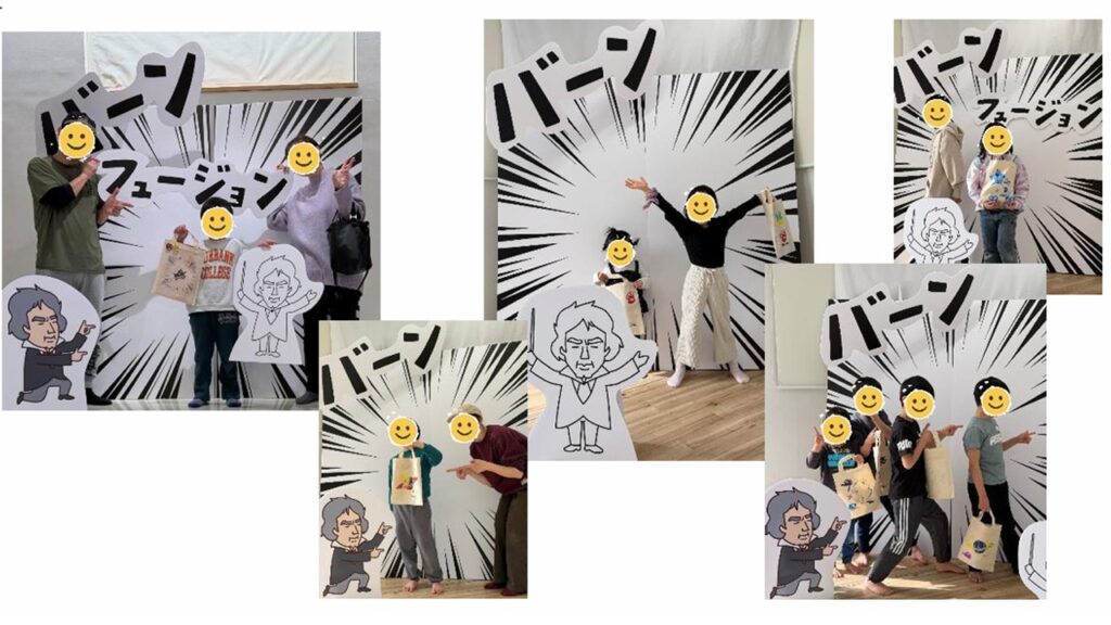 会場には、SNSにアップしたくなるような漫画チックなフォトスポットも登場し、完成したバッグを手に、笑顔で撮影する姿が印象的でした。